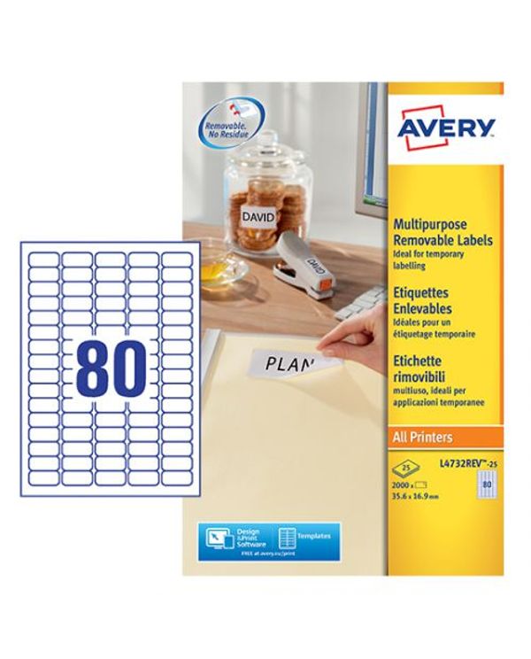 Avery Removable Labels 80 Per Sheet White (Pack of 2000) L4732REV-25