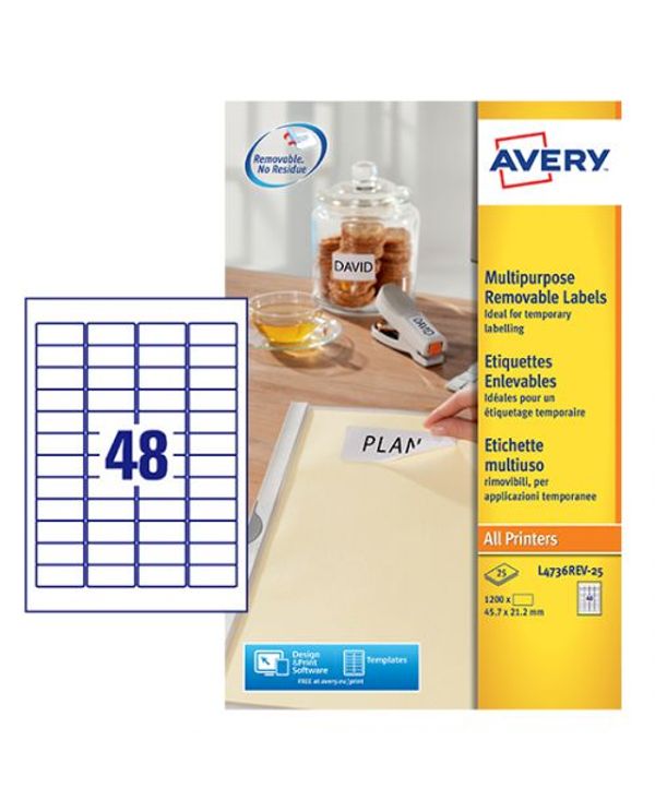 Avery Removable Labels 48 Per Sheet White (Pack of 1200) L4736REV-25