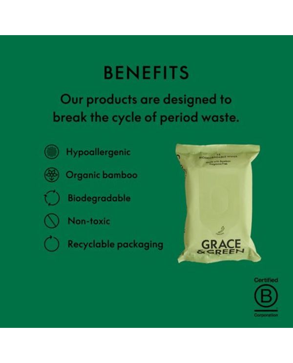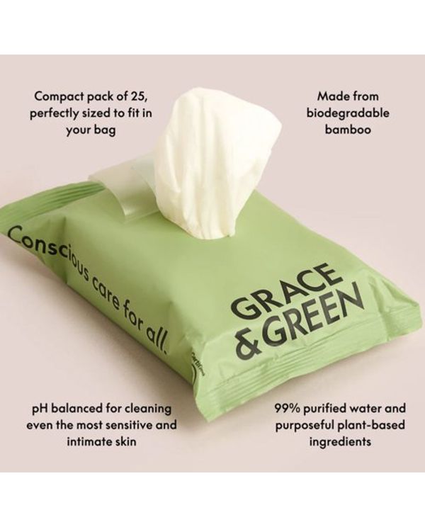 Grace and Green Biodegradable Bamboo Wipes (Pack of 25) GGWET WIPES 25