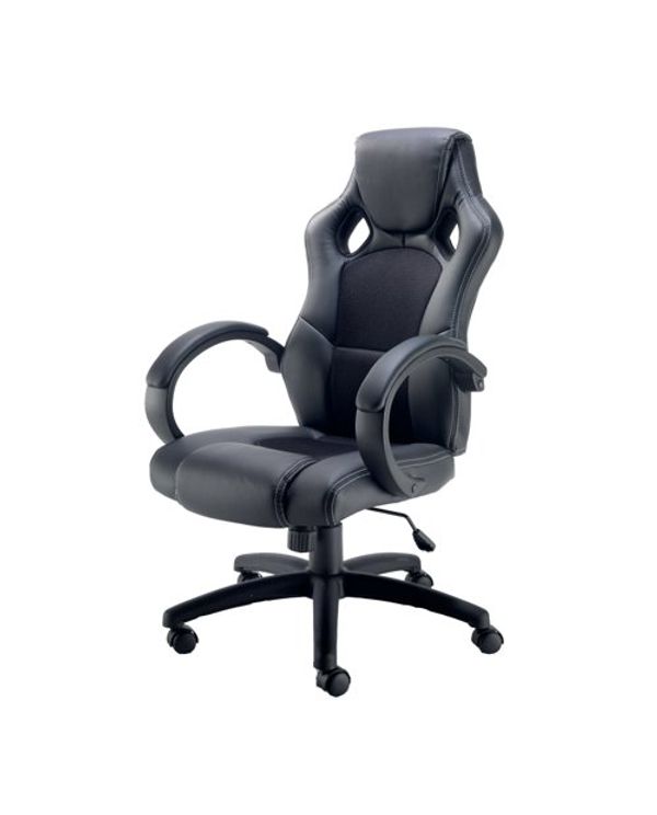 Arista Bolt Executive Racing Chair 620x670x1080-1170mm Leather Look and Mesh Back Black KF73591