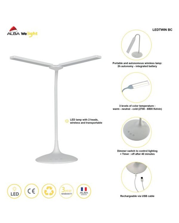 Alba Nomad Two Head Desk Lamp White LEDTWIN BC UK