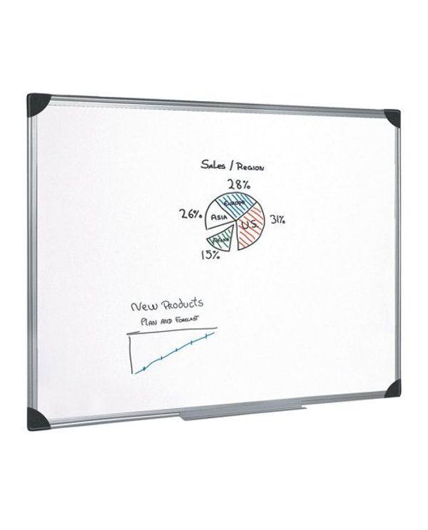 5 Star Office Whiteboard Drywipe Magnetic with Pen Tray and Aluminium Trim 1800x1200mm