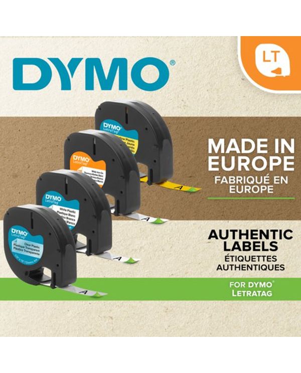 Dymo 91202 LetraTag Plastic Tape 12mm x 4m Yellow S0721620