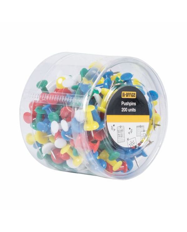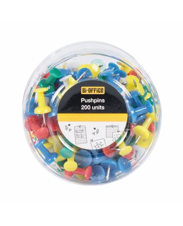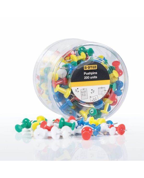 Bi-Office Push Pins Assorted Colours (Pack of 200) PI0324