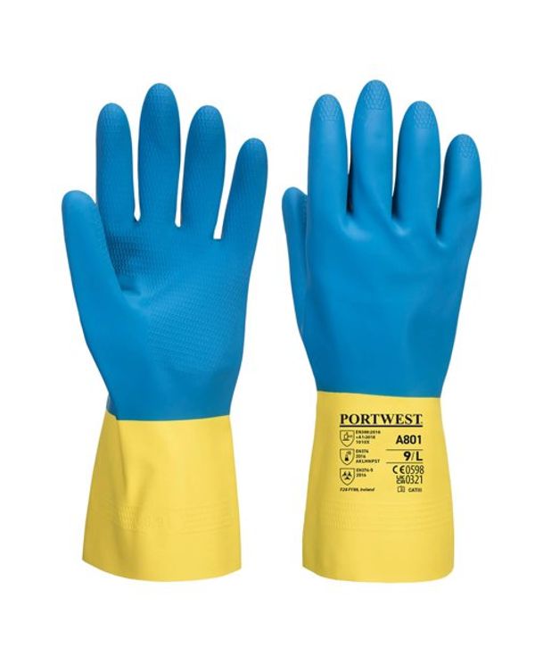 Portwest Double Dipped Latex Gauntlet XL Yellow/Bl (Pack of 12)