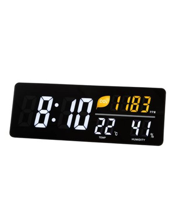 Alba LED Wall Clock With CO2 Level Temperature Humidity Sensor Black HORDGTL CO2