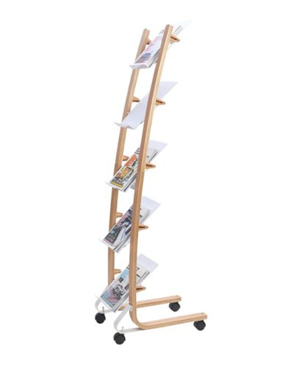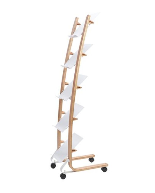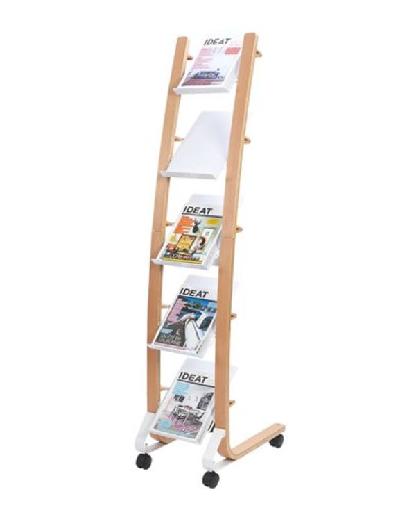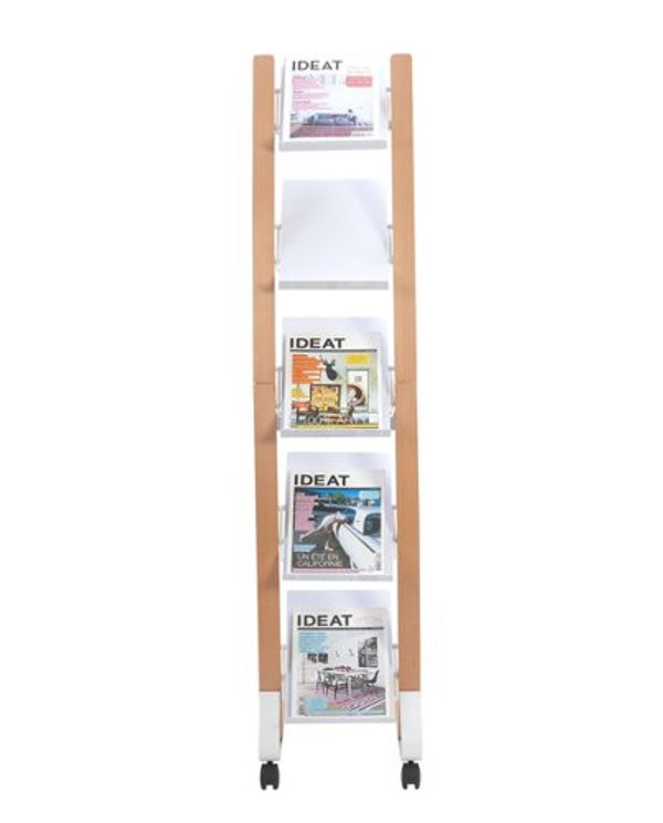 Alba Mobile Narrow Literature Display 5 Compartments A4 Natural Frame White Compartments DD5PMW BC