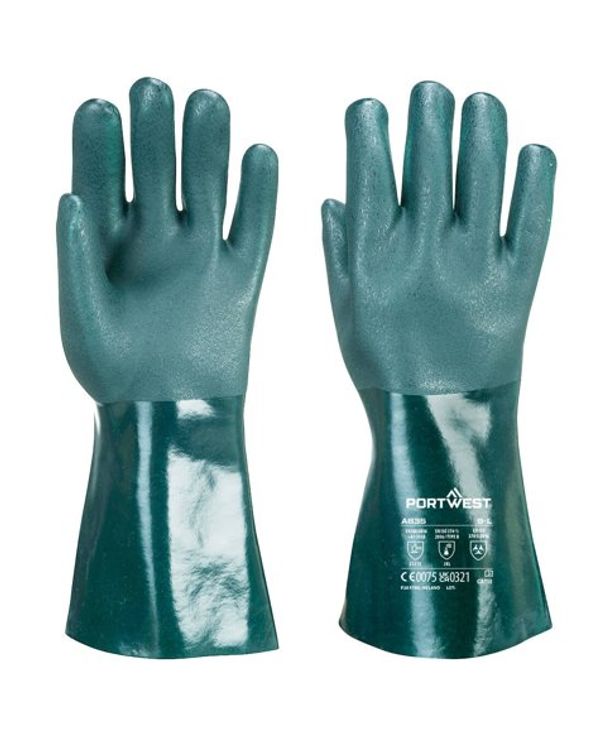 Portwest Double Dipped PVC Gauntlet 35cm 2XL Green (Pack of 12)
