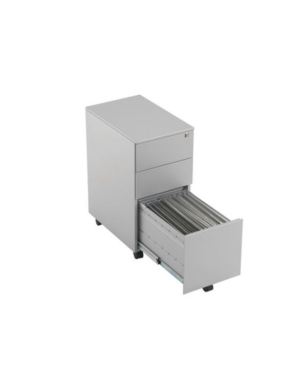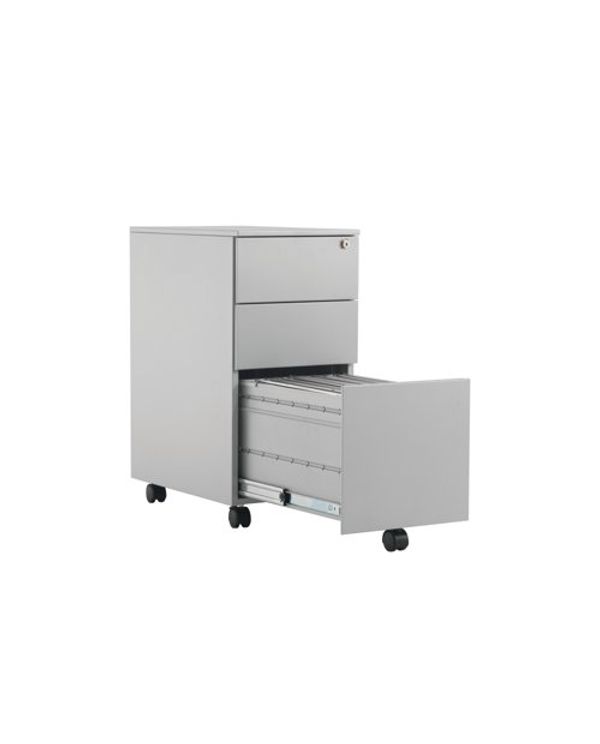 Jemini 3 Drawer Mobile Pedestal Slimline Steel 300x470x615mm Silver KF74157