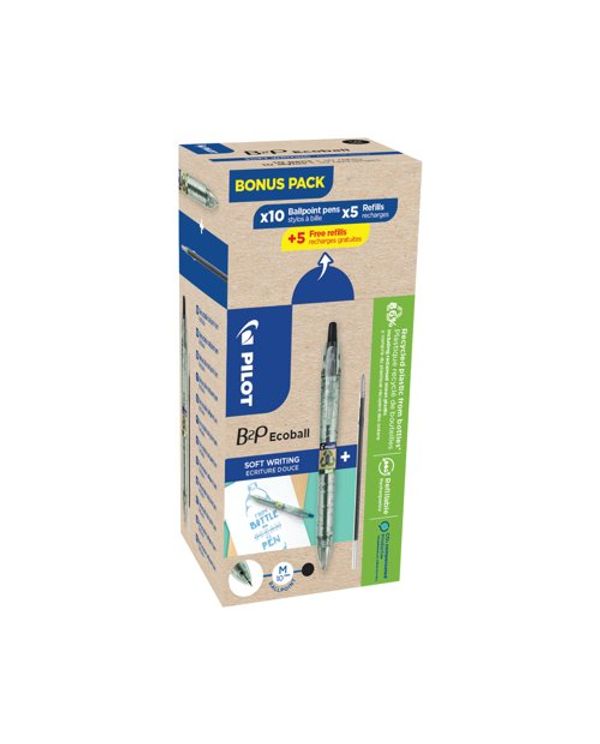 Pilot B2P Ecoball GreenPack Ballpoint Pen/Refill 10 Pens+10 Refills Blk (Pack of 20) 3131910586562