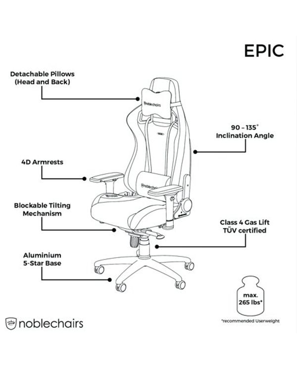 noblechairs EPIC Gaming Chair Real Leather Black GC-005-NC