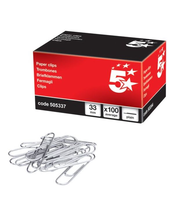5 Star Office Paperclips Metal Large Length 33mm Plain (Pack of 100)