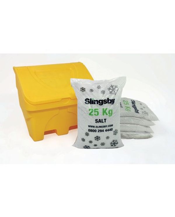 Salt and Grit Bin Yellow 130L Supplied with 5x25kgs White De-icing Salt 395102
