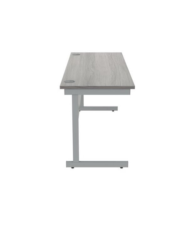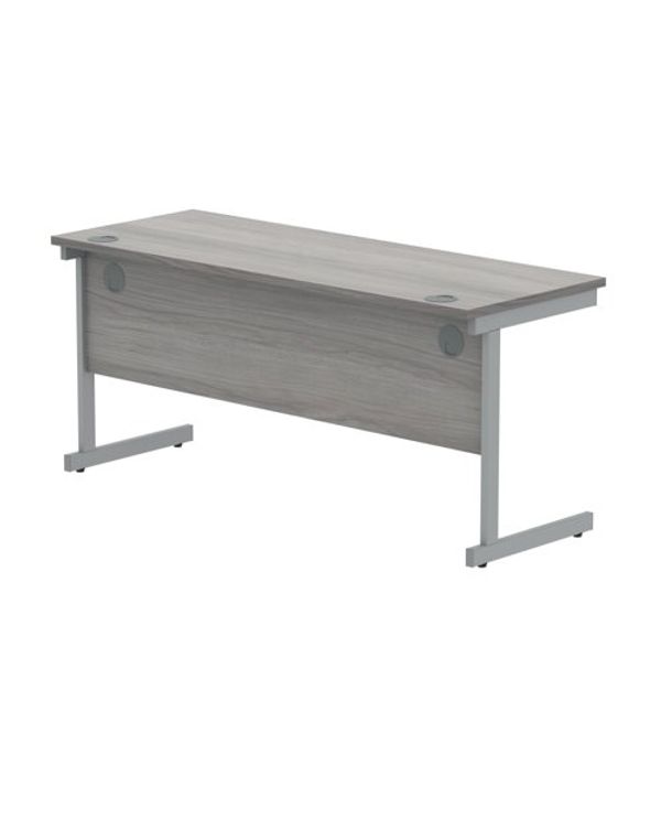 Polaris Rectangular Single Upright Cantilever Desk 1600x600x730mm Alaskan Grey Oak/Silver KF882341