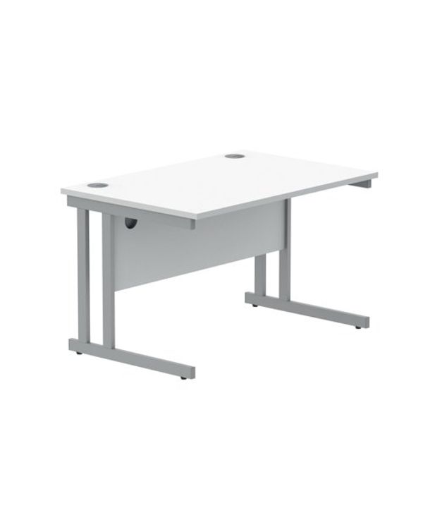 Polaris Rectangular Double Upright Cantilever Desk 1200x800x730mm Arctic White/Silver KF882347