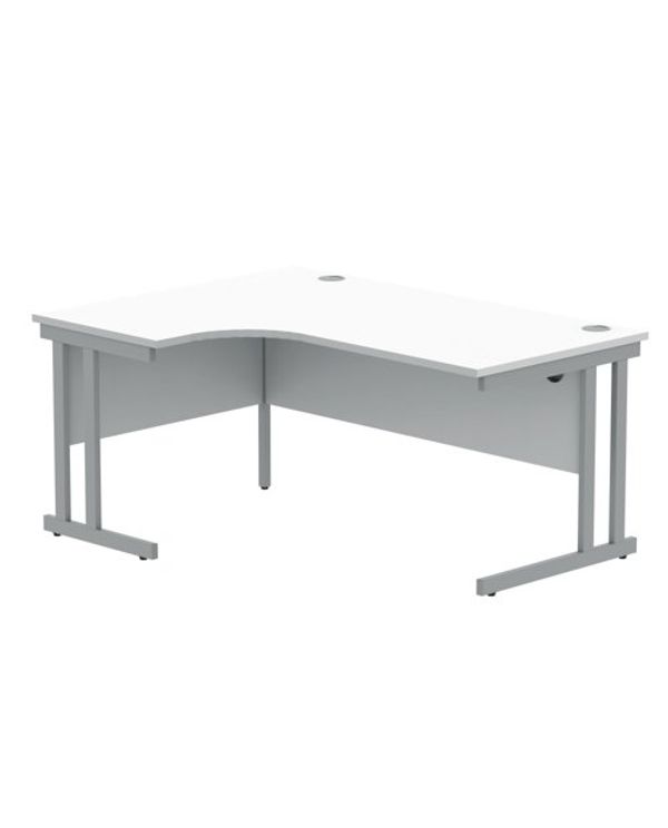Polaris Left Hand Radial Double Upright Cantilever Desk 1600x1200x730mm Arctic White/Silver KF882350