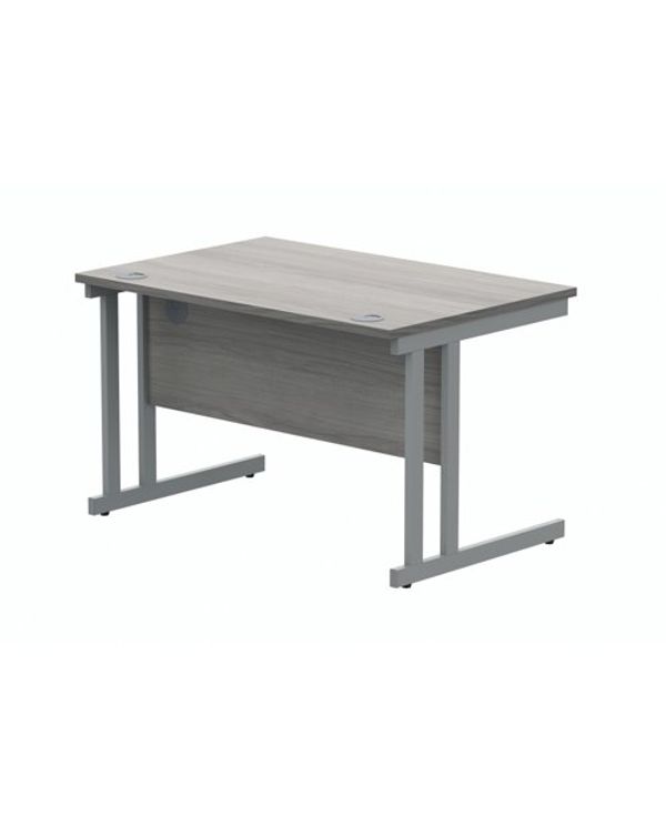 Polaris Rectangular Double Upright Cantilever Desk 1200x800x730mm Alaskan Grey Oak/Silver KF882363