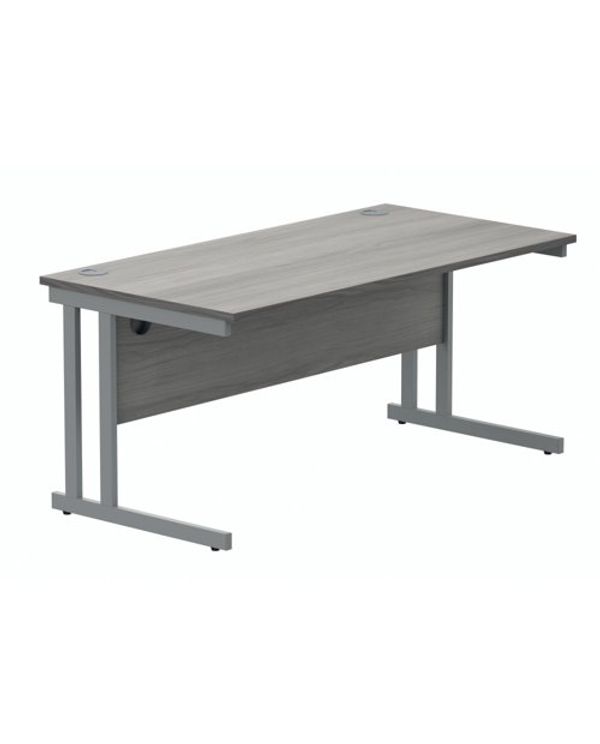 Polaris Rectangular Double Upright Cantilever Desk 1600x800x730mm Alaskan Grey Oak/Silver KF882365