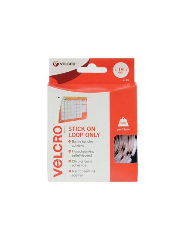 Velcro Stick On Coins Loop Only 19mm White (Pack of 125) VEL-EC60232