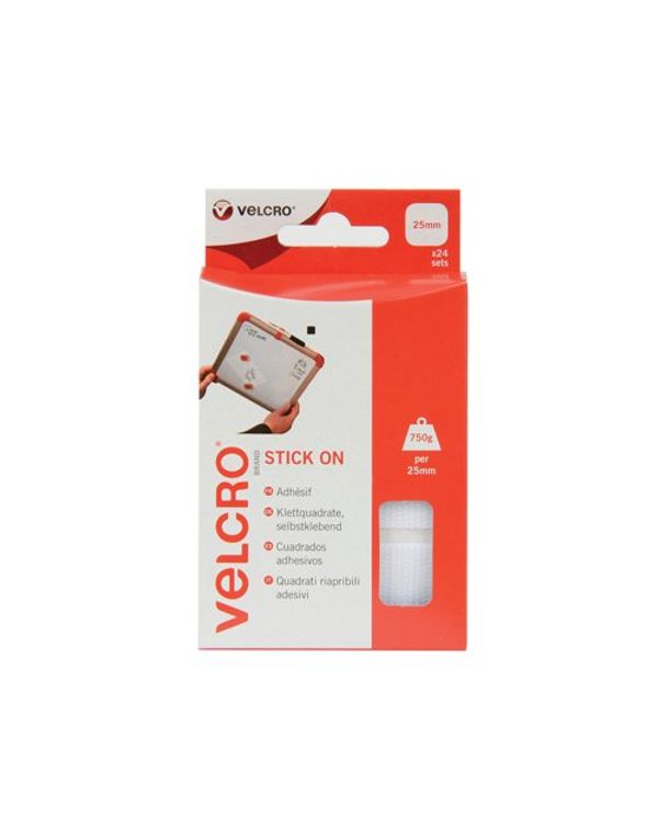 Velcro Stick On Squares 25mm White (Pack of 24) VEL-EC60235