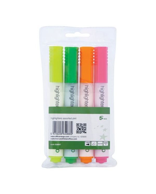 5 Star Highlighter Chisel Tip 1-5mm Line Wallet Assorted (Pack of 4)