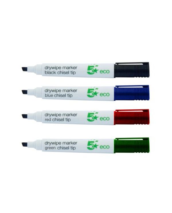 5 Star Drywipe Marker Chlorine-free Chisel Tip 2-5mm Line Assorted (Pack of 4)