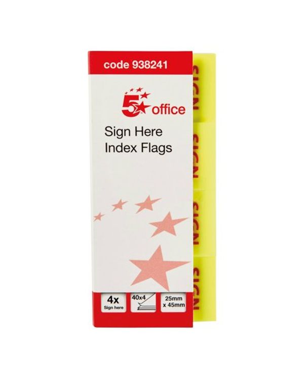 5 Star Office Sign Here Index Flags Tab Red Arrow 46x25mm (Pack of 5)