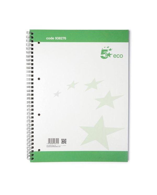 5 Star Spiral Pad Ruled Recycled Margin Perforated 4 Holes 100pp A4+ Green/White (Pack of 10)