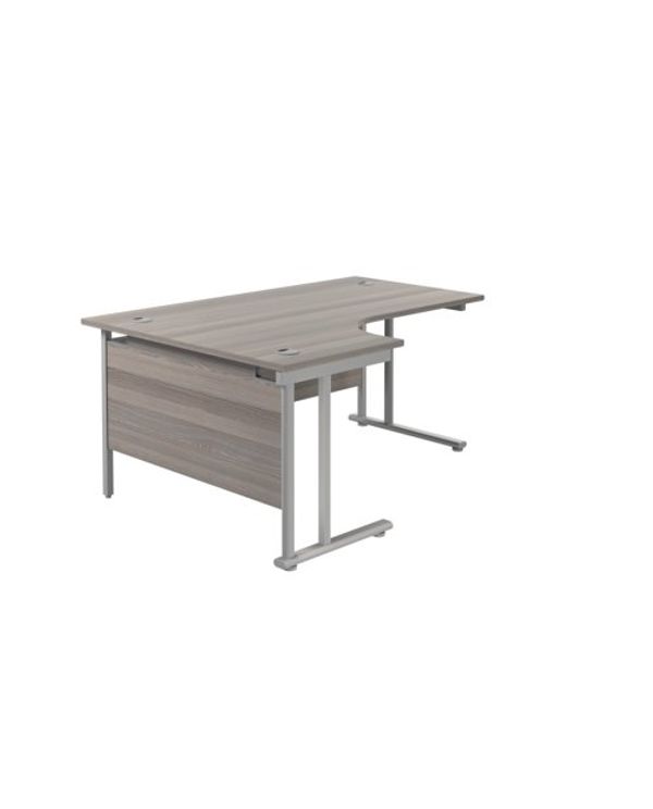 Jemini Radial Left Hand Cantilever Desk 1600x1200x730mm Grey Oak/Silver KF807537