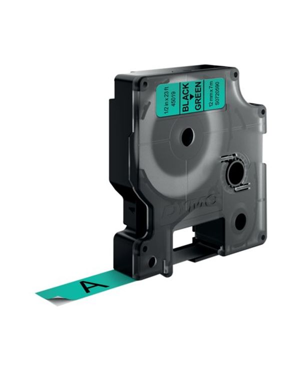 Dymo 45019 D1 LabelMaker Tape 12mm x 7m Black on Green S0720590