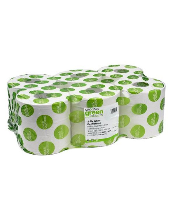 Maxima Green 2-Ply White Centrefeed Hand Wiper 150 Metres (6 Pack) KMAX4695G