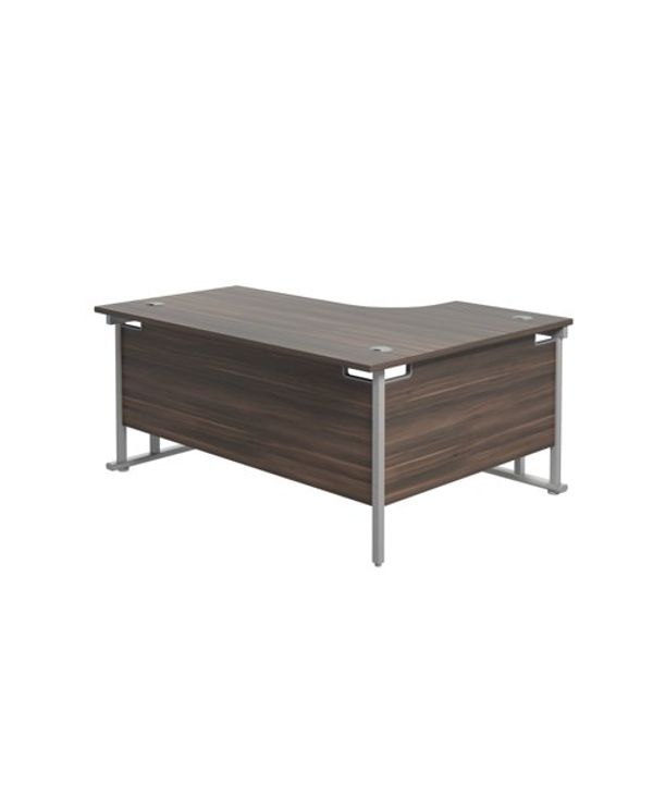 Jemini Radial Left Hand Cantilever Desk 1600x1200x730mm Dark Walnut/Silver KF807575