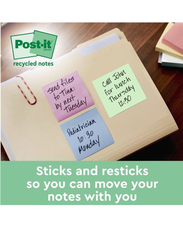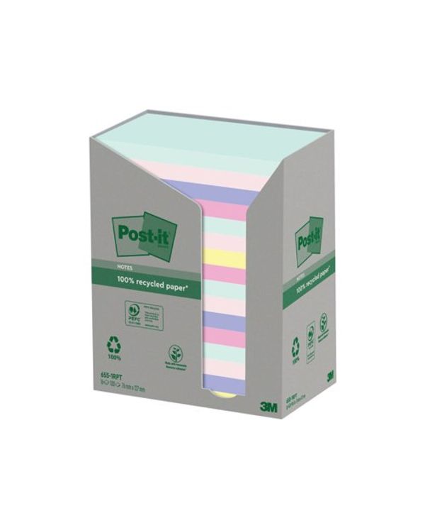 Post-it Recycled Ast Colour 76x127mm 100 Sheet (Pack of 16) 7100259665