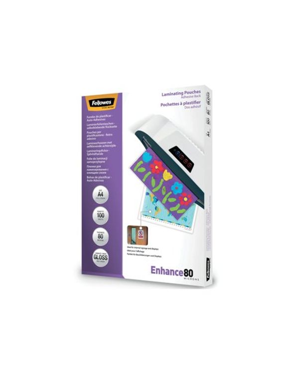 Fellowes Enhance80 Self Adhesive Laminating Pouch A4 160 Micron Total Gloss (Pack of 100) 53022