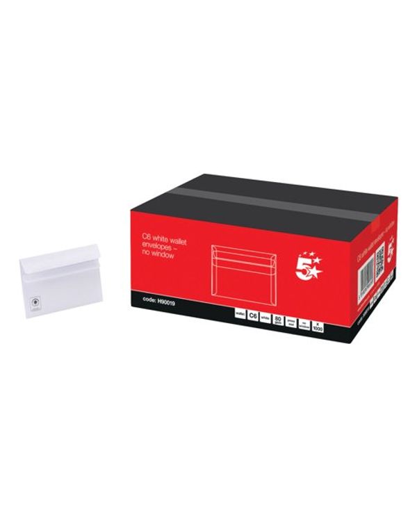 5 Star Office Envelopes Recycled Wallet Self Seal Lightweight C6 114x162mm White (Pack of 1000)