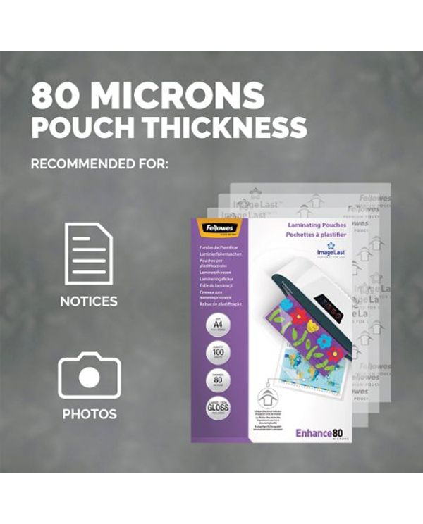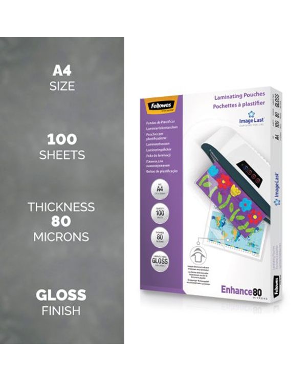 Fellowes Laminating Pouch A4 160 Micron Total Thickness Gloss (Pack of 100) 5306101