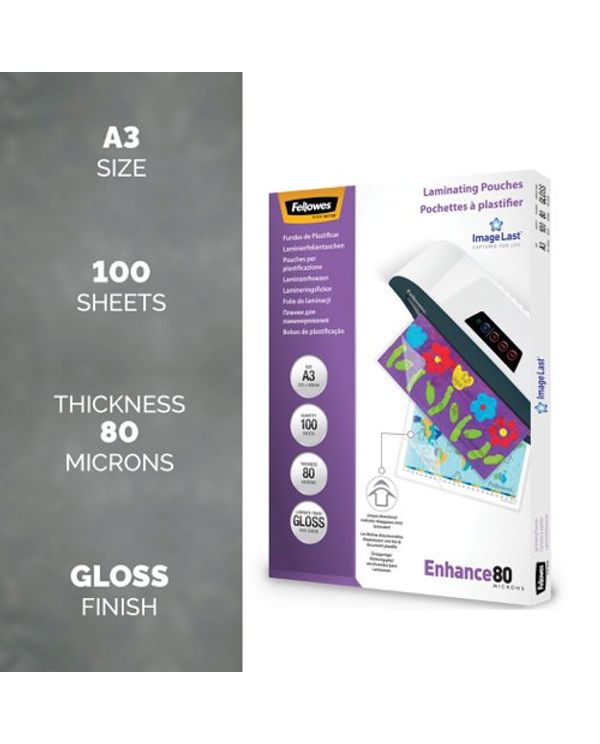 Fellowes Laminating Pouch A3 160 Micron Total Thickness Gloss (Pack of 100) 5306207