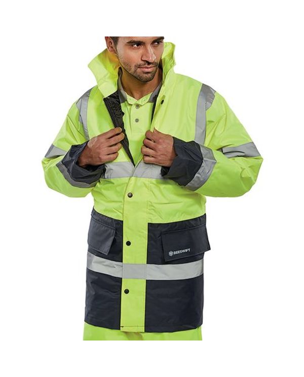 Beeswift Fleece Lined High Visibility Traffic Jacket Saturn Yellow/Navy Blue 6XL CTJFLTTSYN6XL