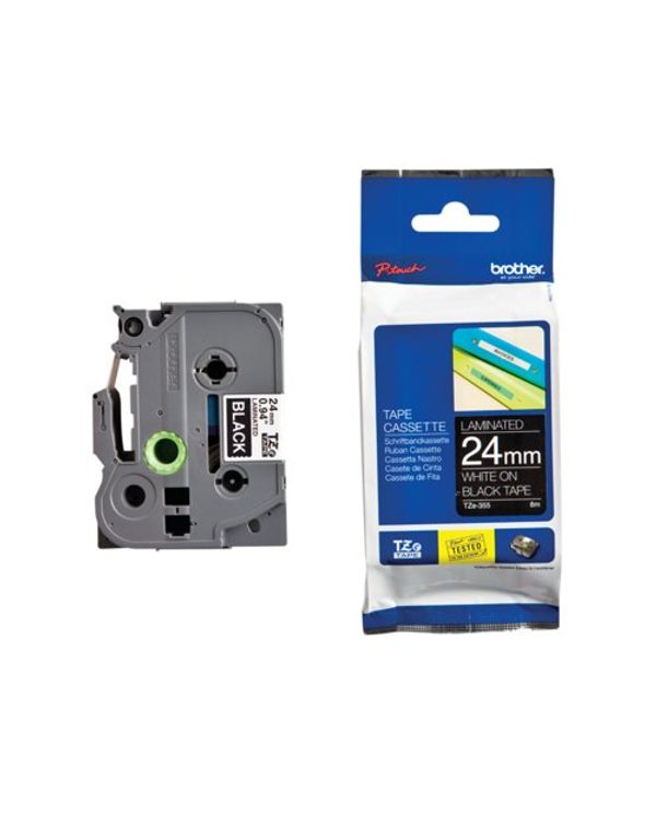 Brother P-Touch TZe Lam Tape Cassette 24mm x 8mm White on Black Tape TZE355