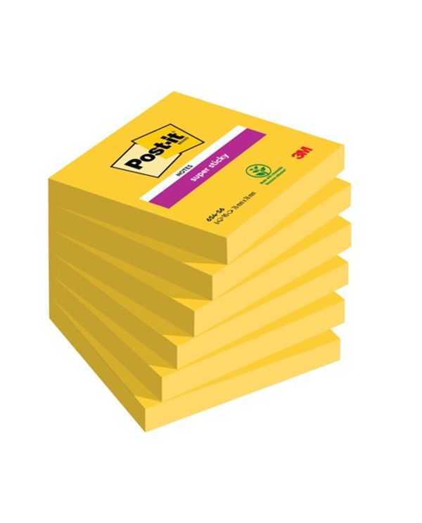 Post-it Notes Super Sticky 76x76mm Ultra Yellow 90 Sheets (Pack of 6) 654-S6