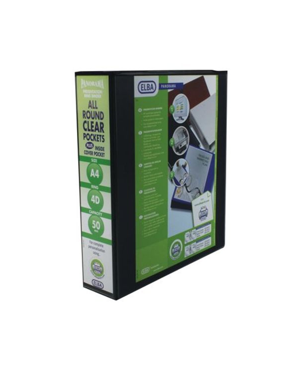 Elba Panorama 50mm 4 D-Ring Presentation Binder A4 Black (Pack of 4) 400008430