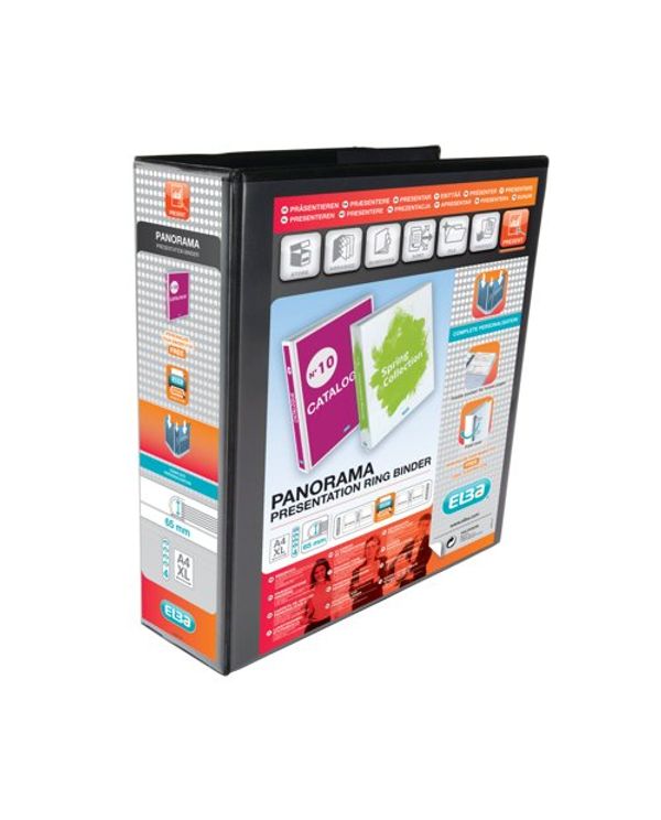 Elba Panorama 65mm 4 D-Ring Presentation Binder A4 Black (4 Pack) 400008442