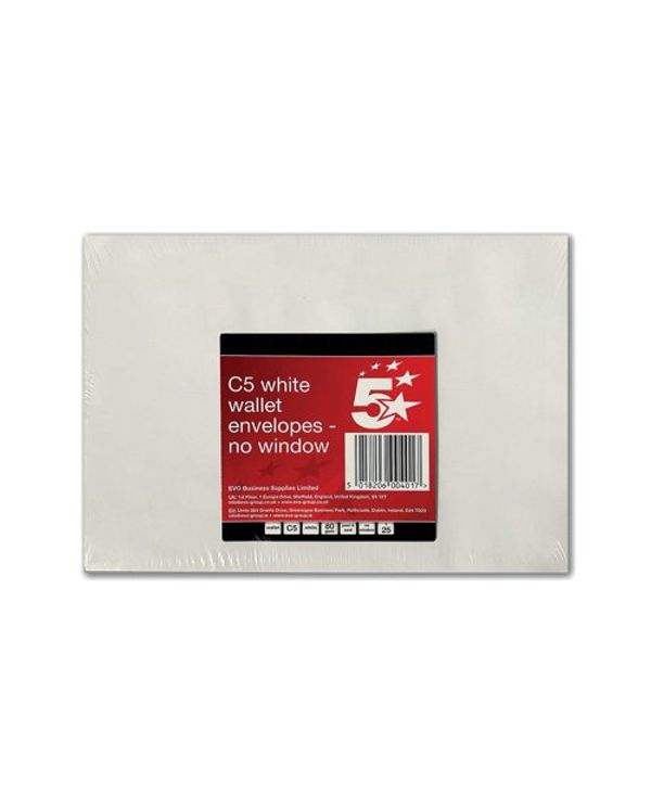 5 Star C5 Envelopes Pocket Peel and Seal 80gsm White (Pack of 25) FS600401