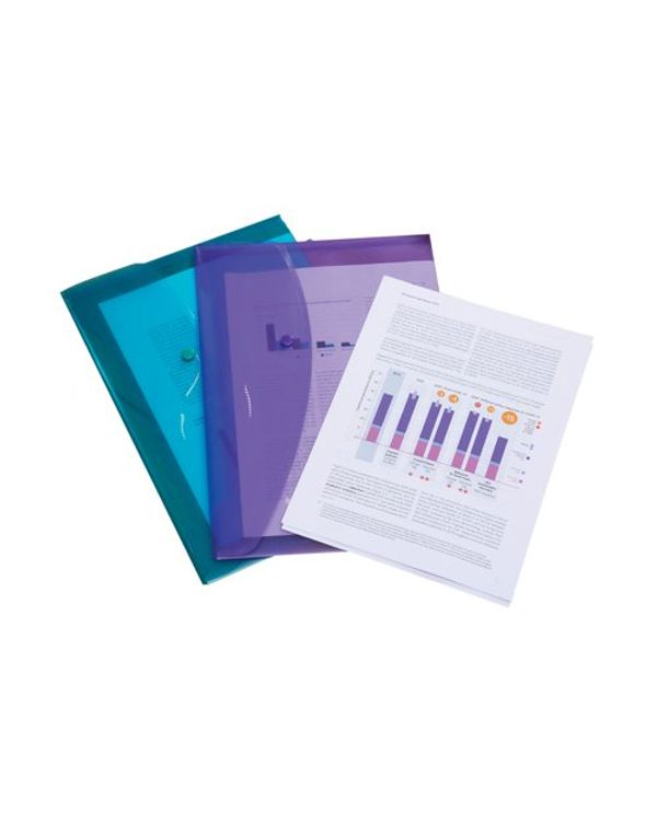 Rapesco Eco Recycled Popper Wallet A4+ Assorted Bright Transparent (Pack of 20) 1494
