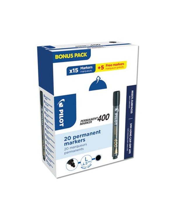 Pilot Permanent Marker 400 Chisel Tip Black Value Pack 15 + 5 FREE (Pack of 20) 3131910504061