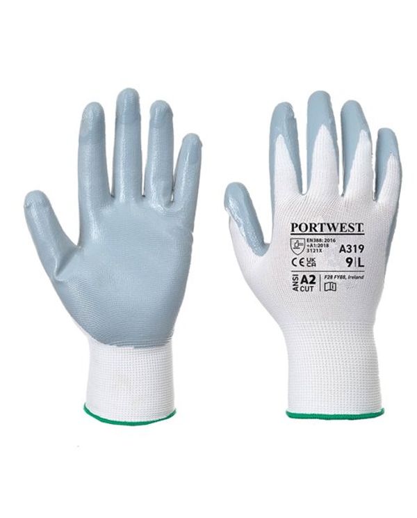 Portwest Flexo Grip Nitrile Glove Retail Pack L Gry/White (Pack of 12)