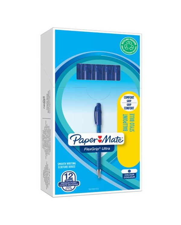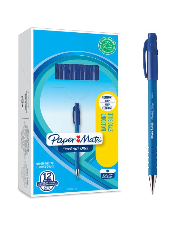 Paper Mate Flexgrip Ultra Ballpoint Pen 1.0mm Tip 0.4mm Line Blue (Pack 12) - S0190153