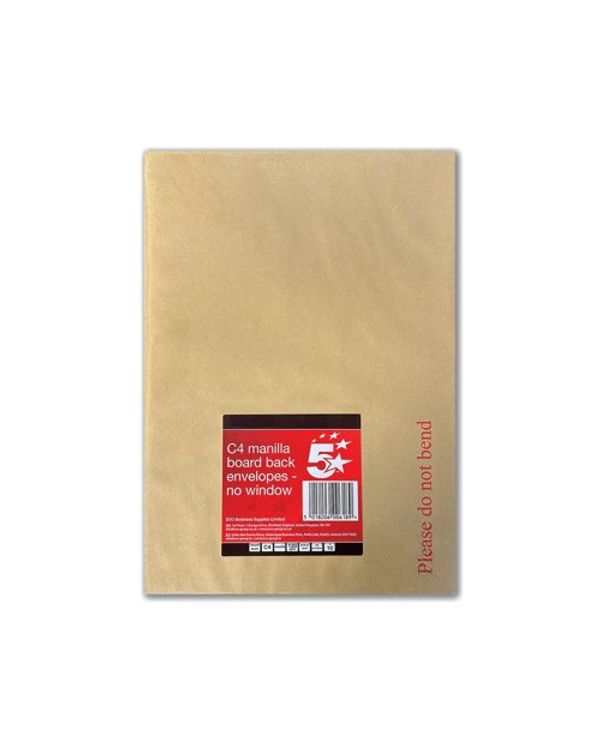 5 Star C4 Envelopes Board Backed Peel and Seal 120gsm Manilla (Pack of 10) FS600618