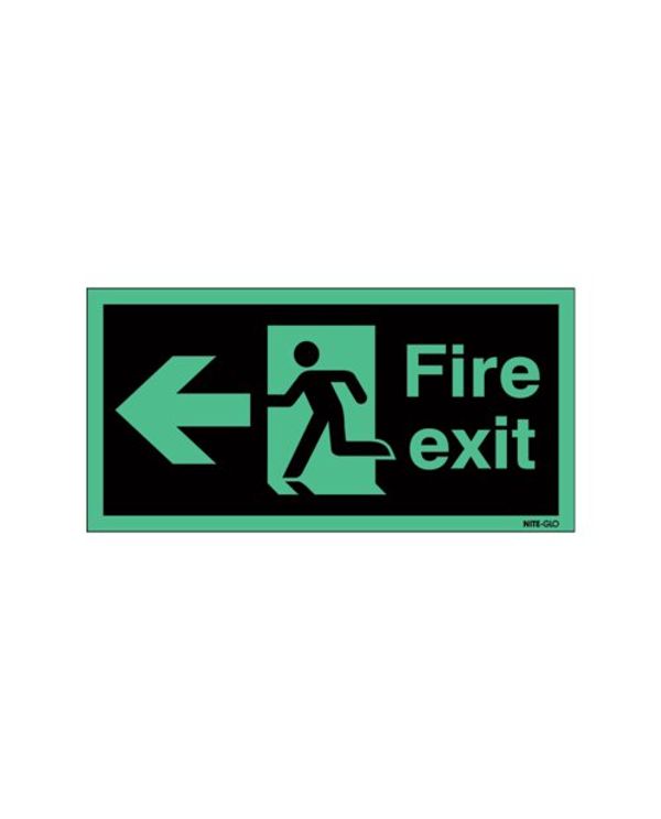 Safety Sign Niteglo Fire Exit Running Man Arrow Left 150x450mm Self-Adhesive NG27A/S
