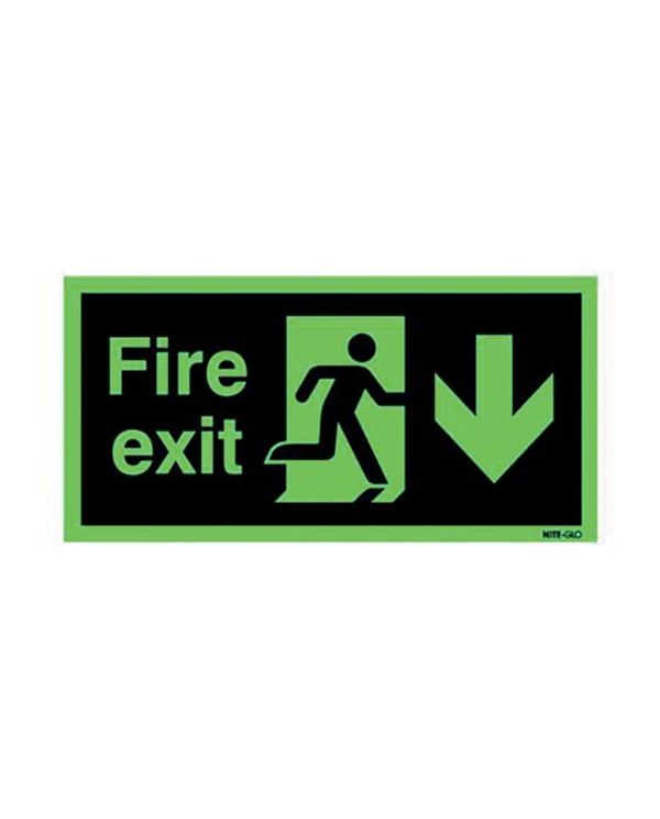 Safety Sign Niteglo Fire Exit Running Man Arrow Down Self-Adhesive 150x450mm NG28A/S